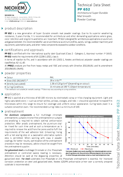 Qualicoat Certificate PP652  | Super Durable Architectural Matt Powder Coatings (COSMOS, RAL)  | |