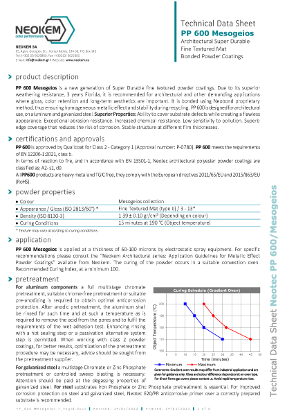 ΑΑΜΑ PP600 – Test Certificate | Υπερανθεκτικά Αρχιτεκτονικά Χρώματα Πούδρας με Υφή Αμμοβολισμένης Επιφάνειας (SAHARA, RIVIERA, COSMOS, AMMOS) | |